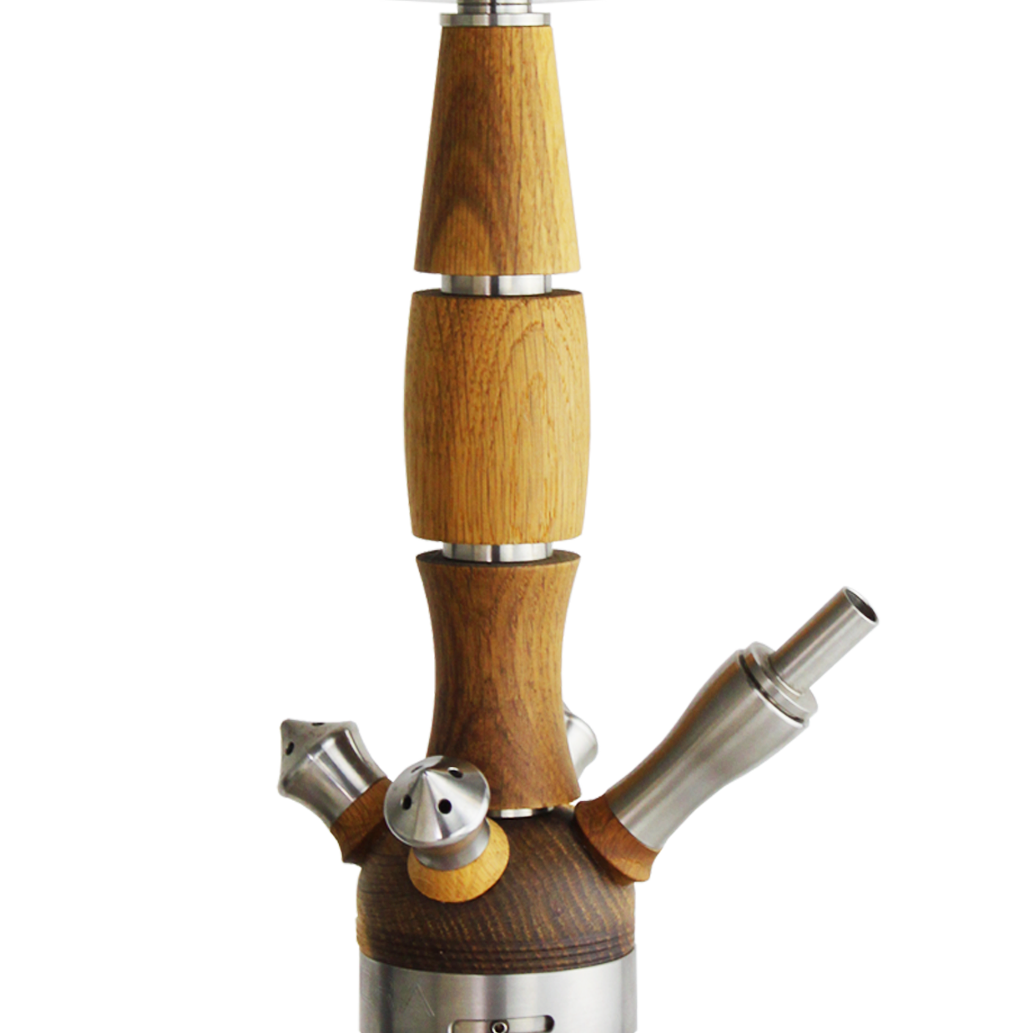 Material: Die Rauchsäule besteht aus Edelstahl und ist mit Holzelementen verziert, die der Shisha ein edles und warmes Erscheinungsbild verleihen.