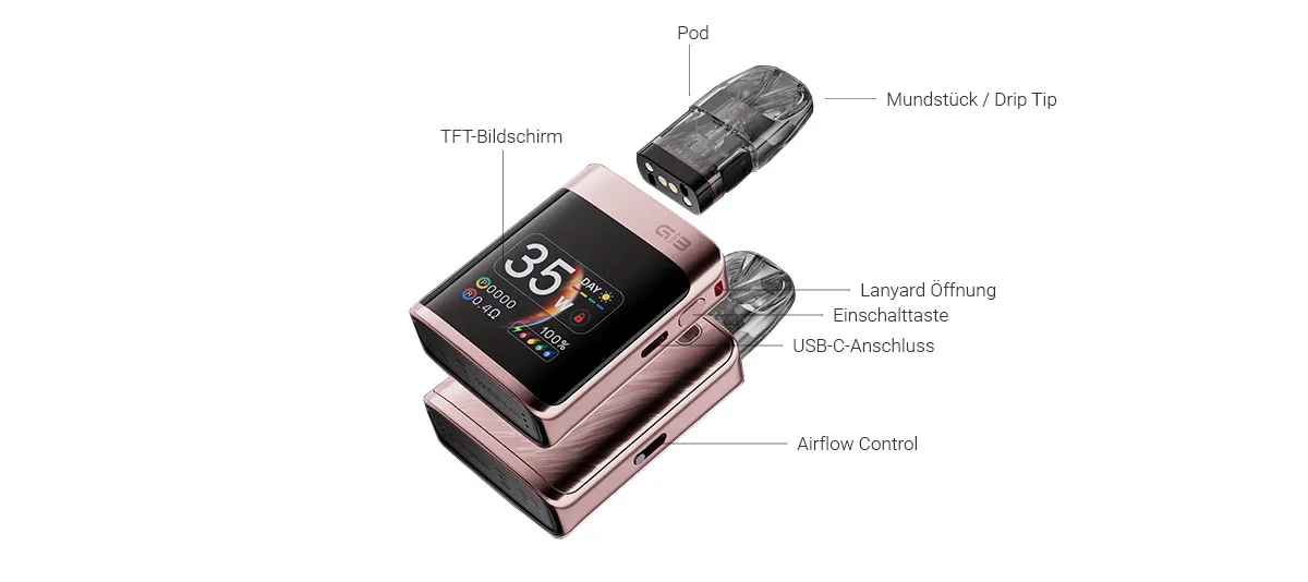 - 1x Caliburn G3 Pro KOKO Pod Akku