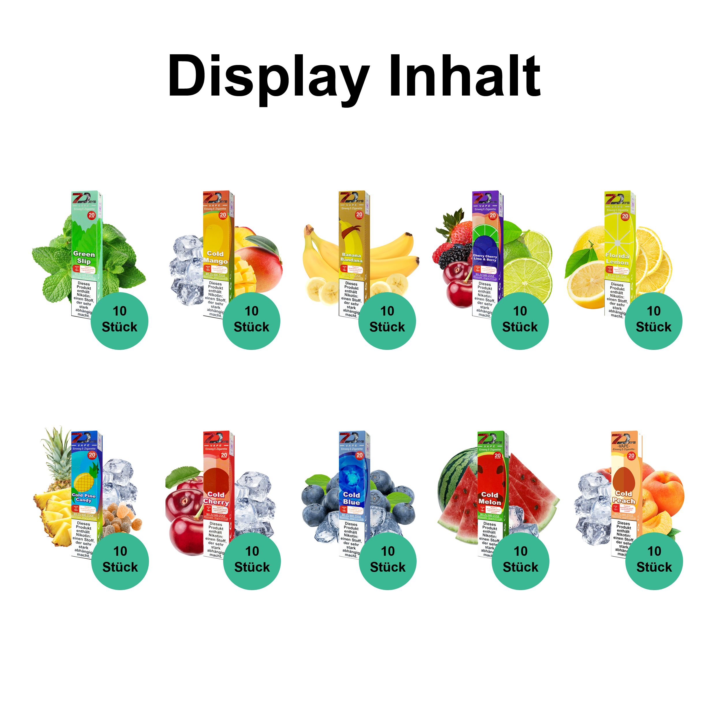 7Days Vape - Einweg E-Zigarette - Display inkl. 100 Vapes