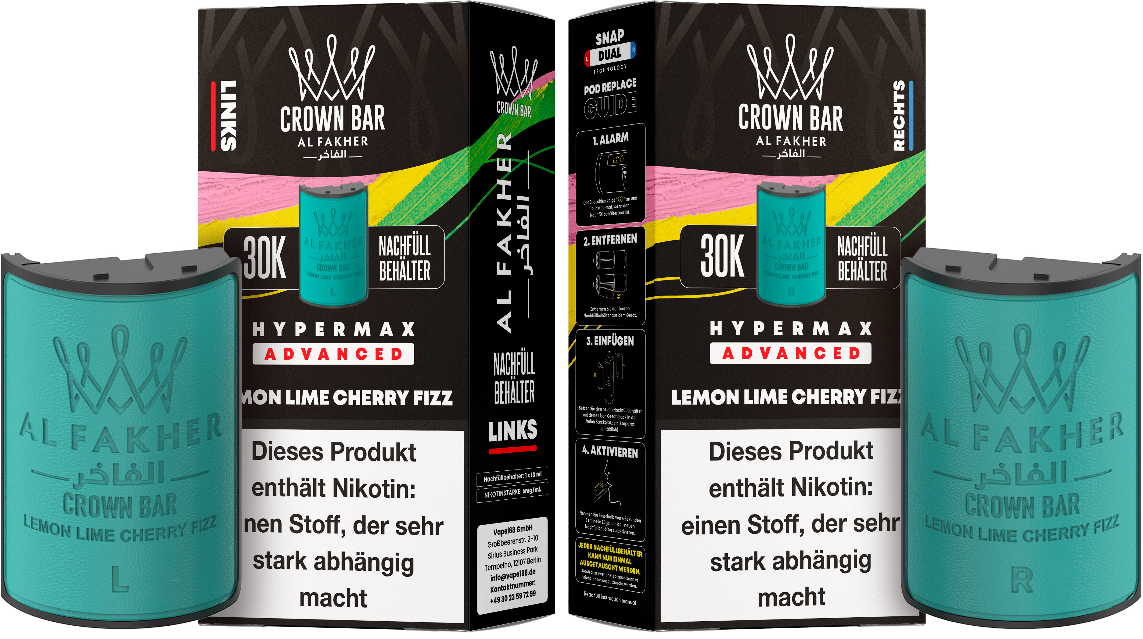 Produktinformationen "Al Fakher - Hypermax 30k 2ml Gerät + 2x10ml Pod - Lemon Lime Cherry Fizz"