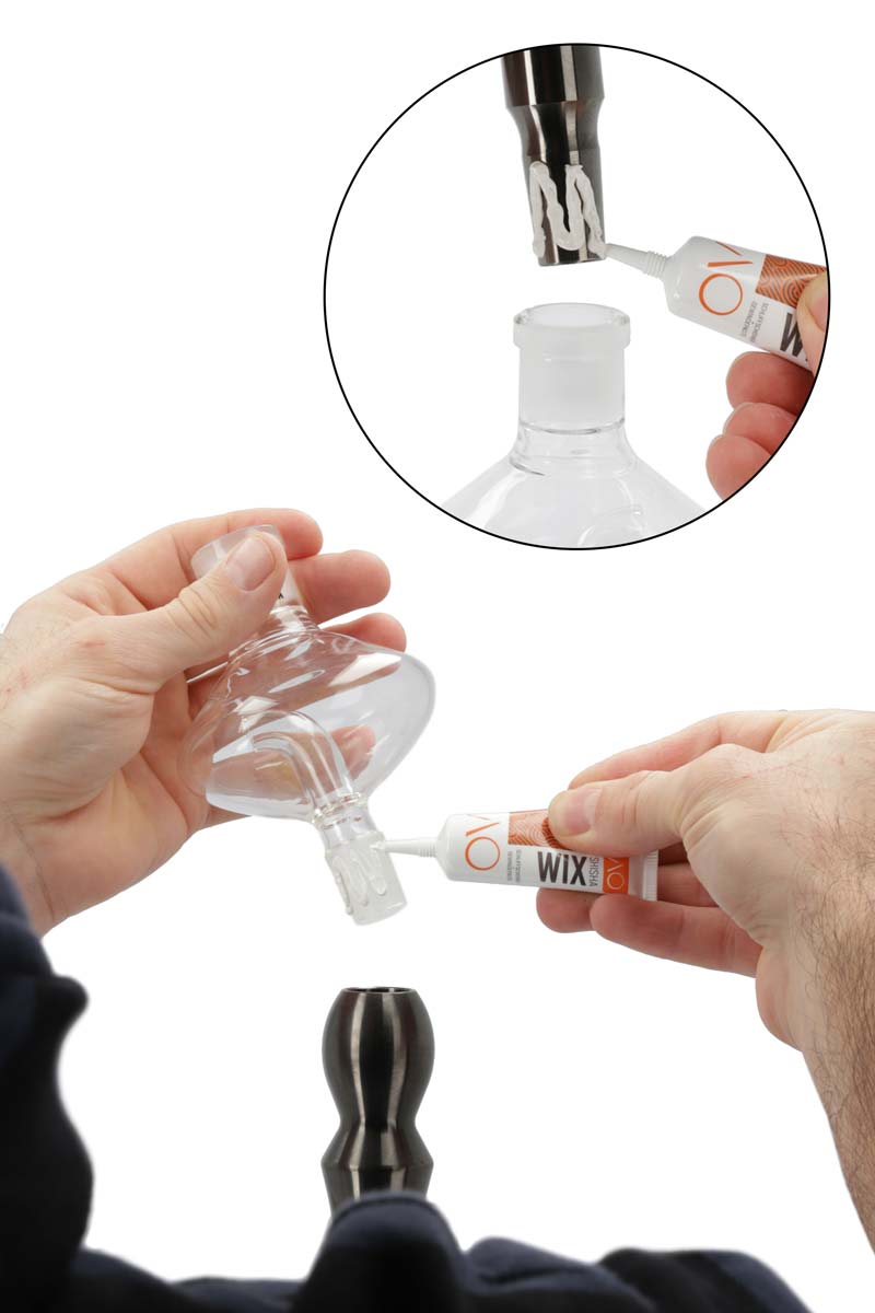 Mit Shisha Wix flutscht's einfach besser! Die Hochtemperatur-Keramikpaste lässt sich direkt aus der Tube sparsam auf jeden Aussenschliff auftragen. Durch eine leichte Drehung nach Zusammenstecken der Schliffe verteilt sich die Paste gleichmäßig und dichtet perfekt ab. AO Shisha Wix schmiert die Schliffadapter, schützt vor Verkanten von Molassefängern und somit vor Brüchen.